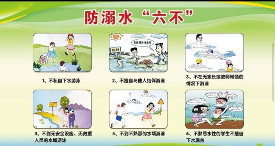 对子女行踪做到“知去向、知同伴、知归时、知内容、知联系方式”;教育子女掌握“六不一会”,即:不私自下水游泳;不擅自与他人结伴游泳;不在无家长带领的情况下游泳;不到无安全设施、无救援人员的水域游泳;不到不熟悉的水域游泳;不熟悉水性的不擅自下水施救。学会基本的自护、自救方法,发现溺水立即大声呼喊,未成年学生不得下水施救。