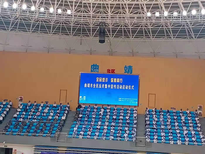 为深入贯彻落实全市打击政治跨境违法犯罪专项行动工作部署,进一步营造全市深入开展全民反诈集中宣传行动浓厚氛围,扩大集中宣传行动效果,推广行动迅速向纵深发展,我校积极组织200名学生于2021年3月24日下午15:00-16:00到曲靖市五馆一中心参加“曲靖市全民反诈集中宣传行动启动仪式”。