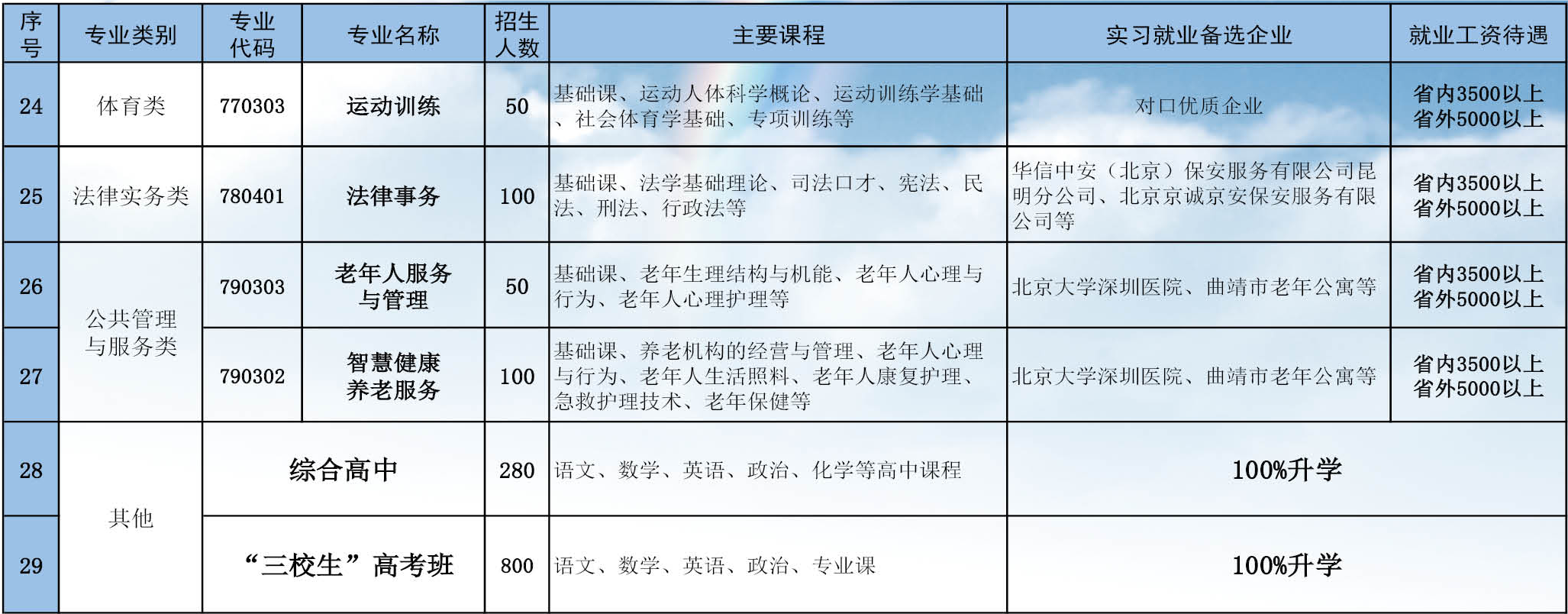 曲靖工商学校2023年“五年制”大专招生专业计划