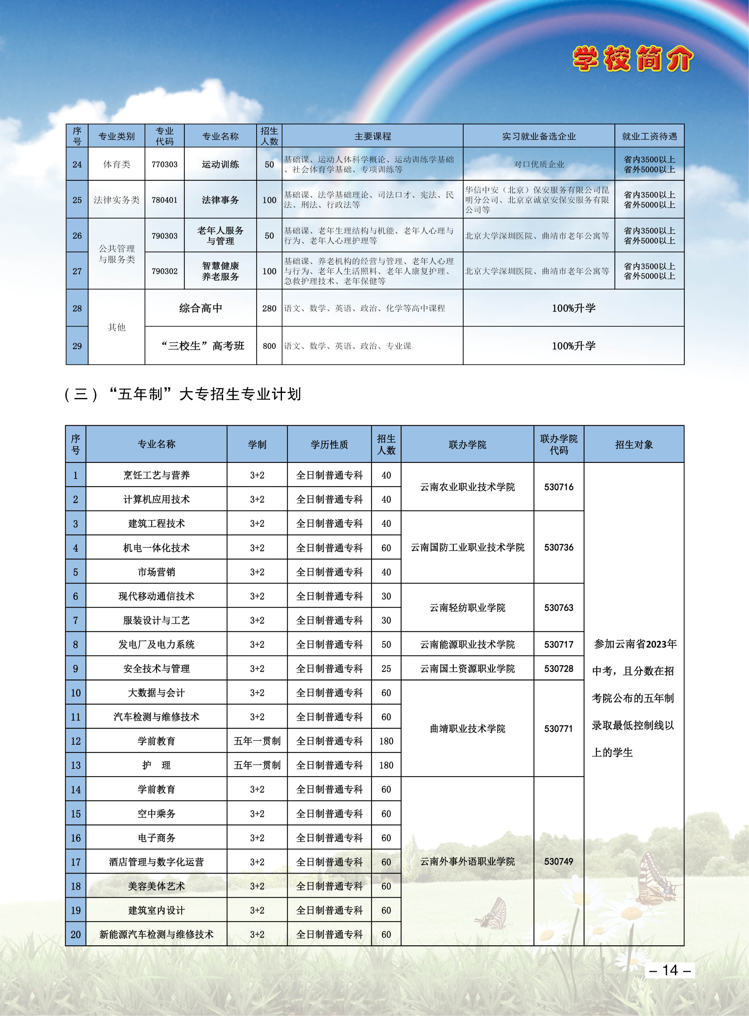 曲靖工商学校2023年“五年制”大专招生专业计划