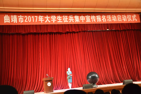 5月24日下午,曲靖师院学生会堂座无虚席,热闹非凡,曲靖市2017年征兵集中曲靖市2017年大学生征兵集中宣传报名活动启动仪式在这里举行。